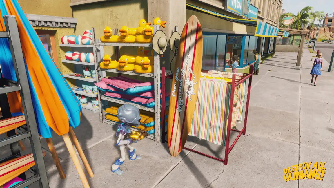 Reduce cities to smoldering ruins with your flying saucer and leave your mark on mankind. The adventure lets you freely traverse explorable cities of nineteen fifties America using a jetpack, causing mayhem from above. You will (re)discover why this game is considered one of the funniest games ever created. You can faithfully enjoy rebuilt from scratch galactic glory.